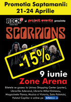 In perioada 21-24 aprilie fanii Scorpions sunt invitati in oricare din magazinele partenere Biletoo pentru a cumpara bilete la concertul din iunie al trupei Scorpions, cu 15% mai ieftine! Oricine cumpara in aceasta perioada un bilet la Gazon A sau la Gazon B primeste o reducere de 15%!
